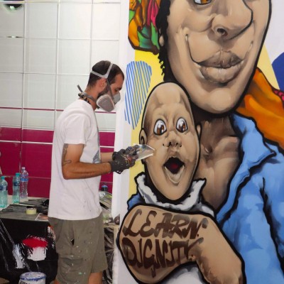 Our entrance in fact now is welcoming all SCCT’ and SIHMA’ customers with an artwork of a young South African artist, Jared, who represented the essence of welcoming people: an African mother holding her baby. On the mother's arm it is written 'learn dignity': the respect for human dignity is one of the core value of the services offered to migrants and refugees by the SCCT and by SIHMA. The graffiti also brings up the four actions proclaimed by Pope Francis in His message on the 2018 Migrants and Refugees World Day: "Welcome, protect, promote and integrate". In this message we find the themes of welcome and protection of migrants and unaccompanied minors and the opportunity represented by intercultural enrichment and integration. (Thanks to Matteo for the photos)
